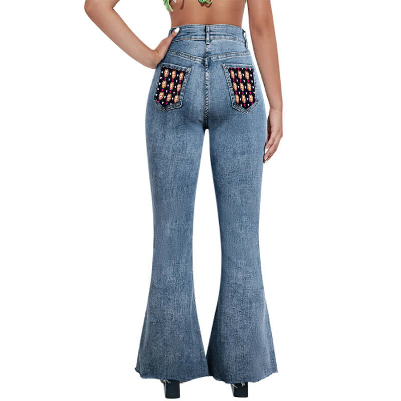 Custom Face Flared Stretch Jeans Heart Square