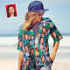 Custom Face Hawaiian Shirt Women's All Over Print Colorful Flowers Short Sleeve Shirt