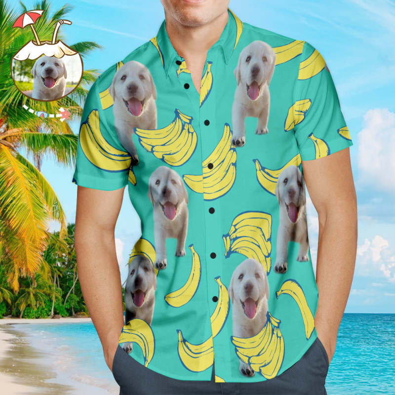 Custom Dog Face Hawaiian Style Banana Dog and Owner Matching Hawaiian Shirts