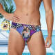 Custom Face Hawaiian Style Men's Swimming Trunks Leaves Square Grid Triangle Swim Briefs