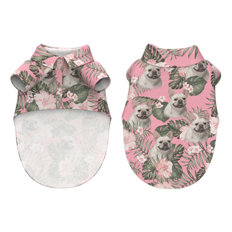 Custom Dog Face Hawaiian Style Pink Flowers Dog and Owner Matching Hawaiian Shirts