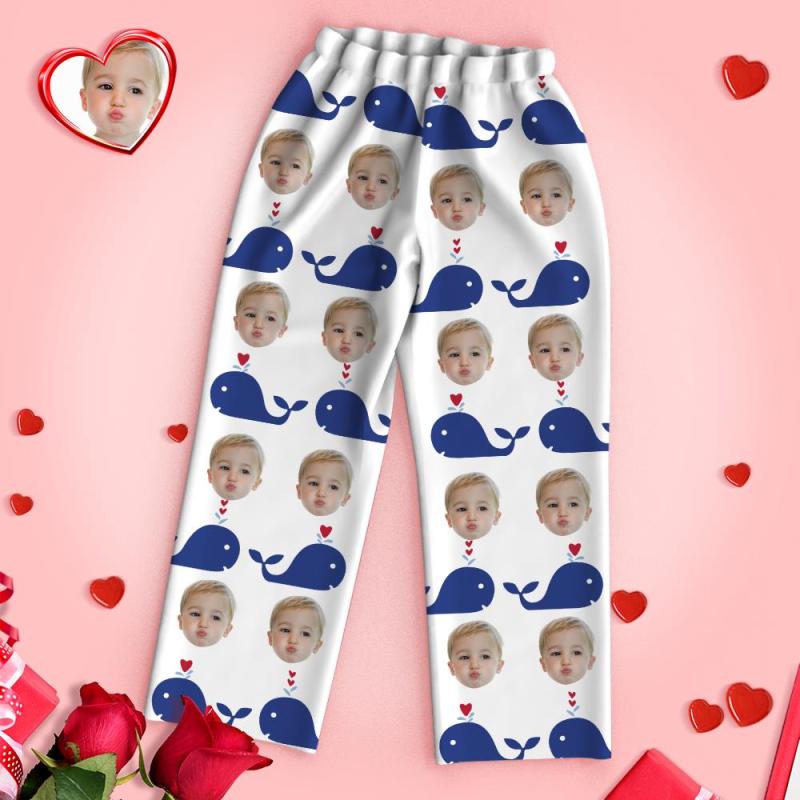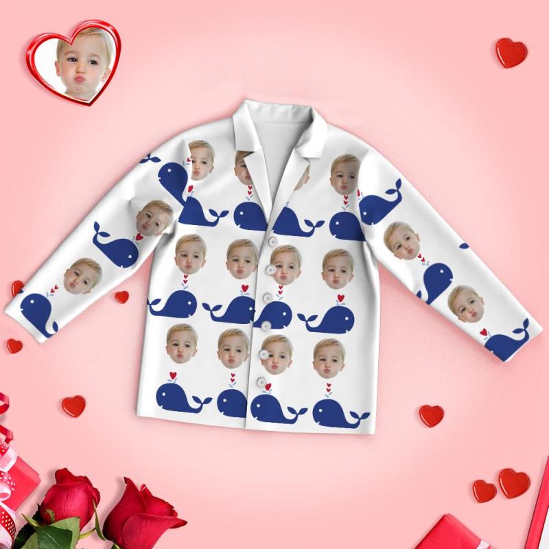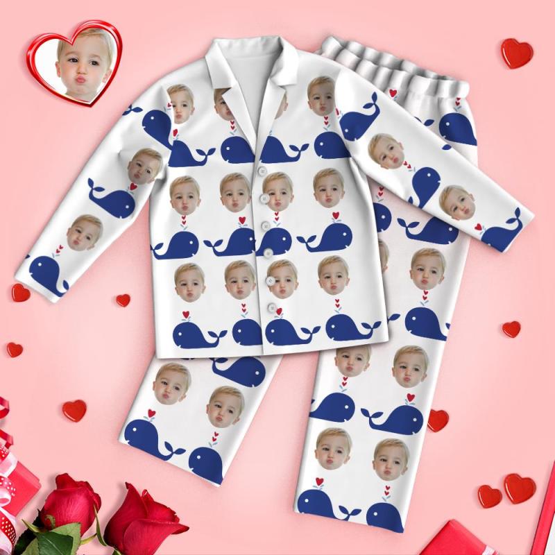 Custom Face Heart Pajamas Long Sleeve Pajamas Whale With Your Face