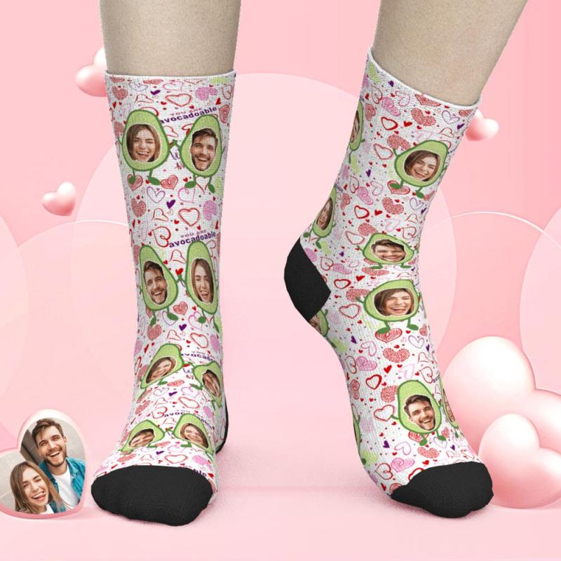 Custom Face Heart Socks Avocado Happy Smiley Face Valentine's Day Gifts