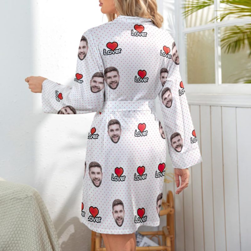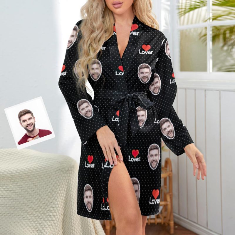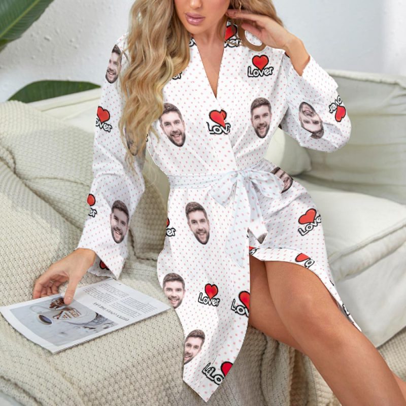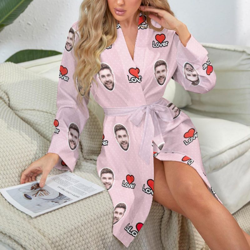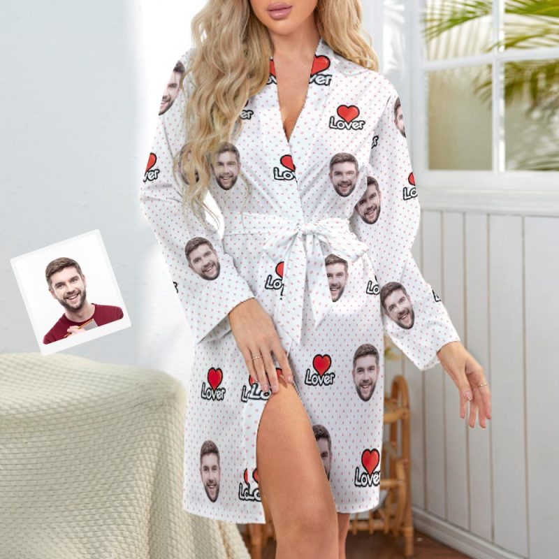 Custom Face Heart Spot Long Sleeved Nightgown Gifts For Lover