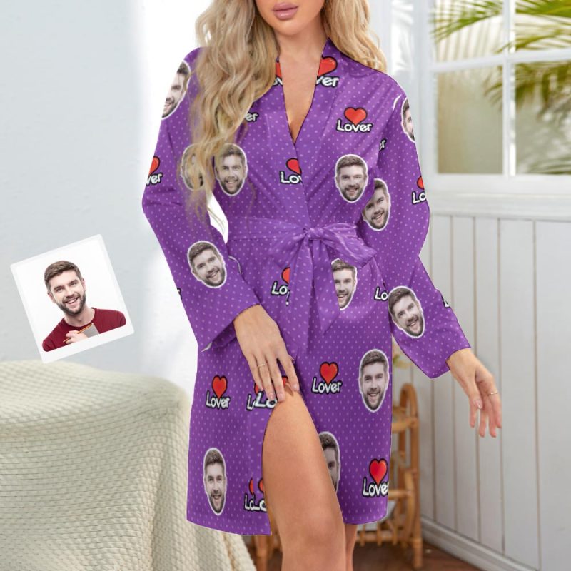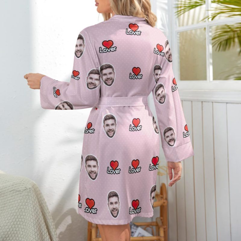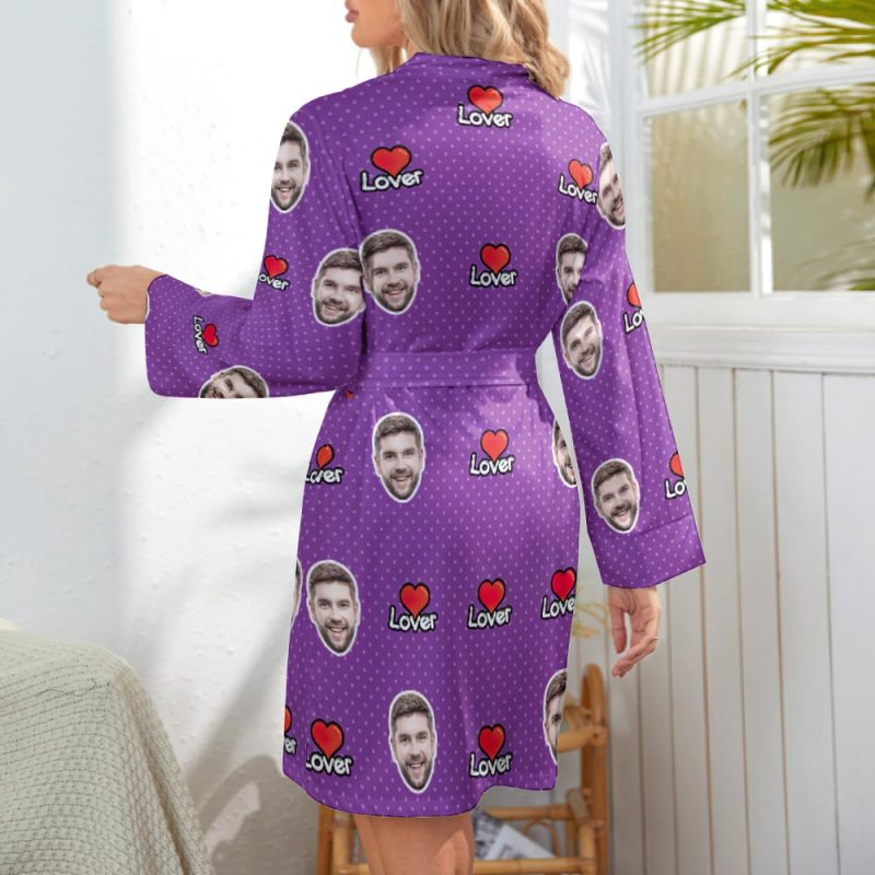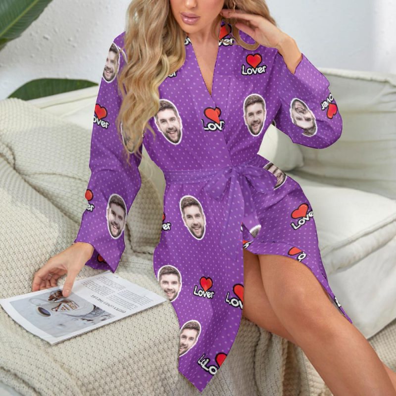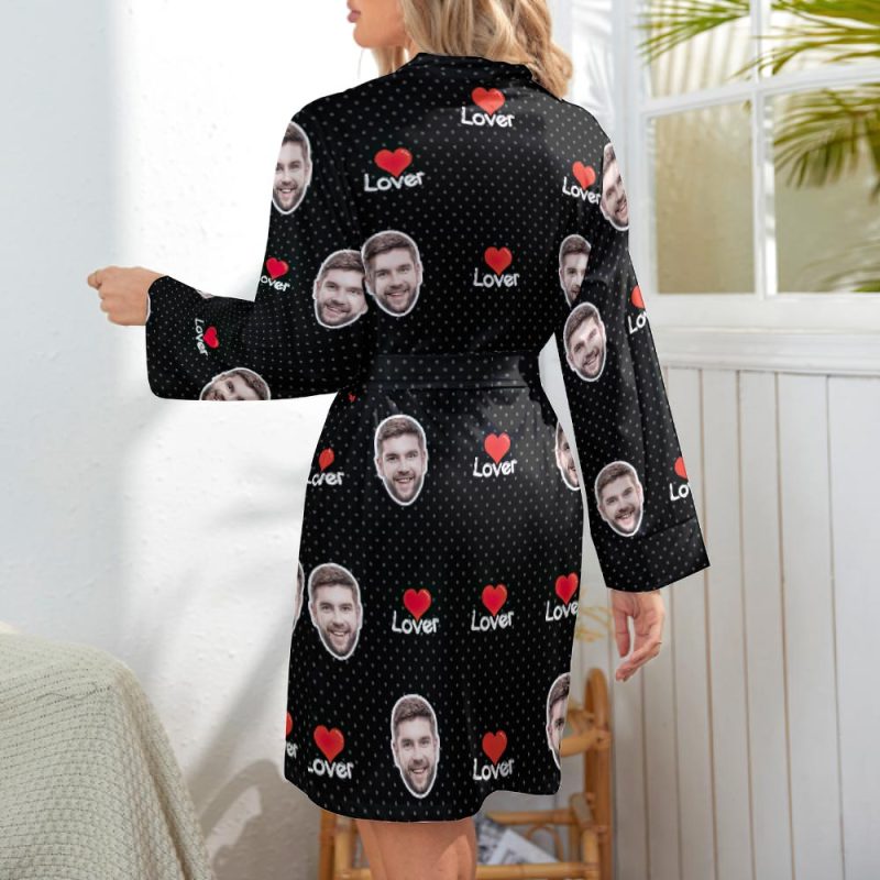 Custom Face Heart Spot Long Sleeved Nightgown Gifts For Lover