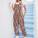 Features: This jumpsuit, with an elegant round neck design, can perfectly change the curve of the neck. Belly drawstring straps, adjustable waist elastic, casual style, light and breathable.