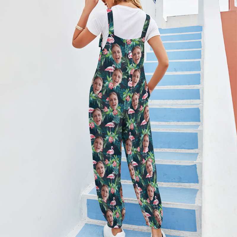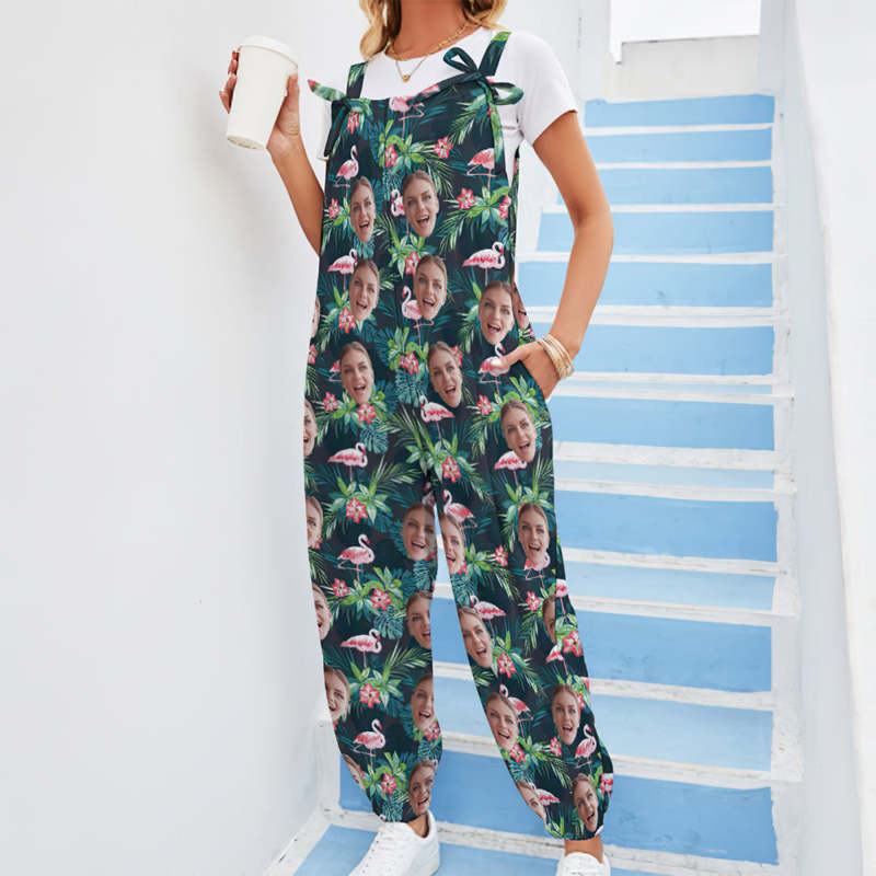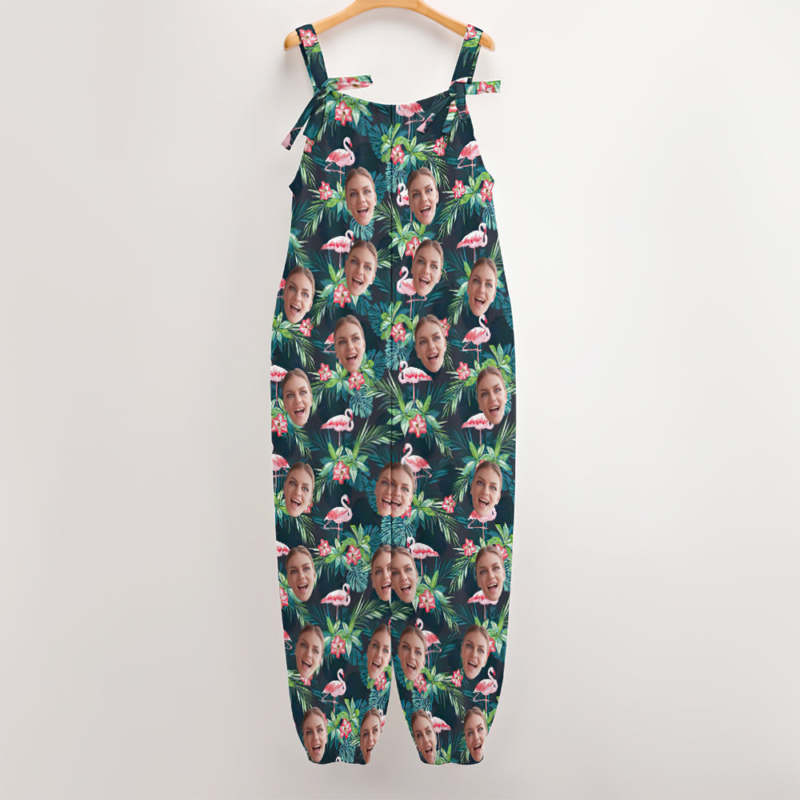 Custom Face Jumpsuit With Suspender Hawaiian Style Rompers - Flamingo