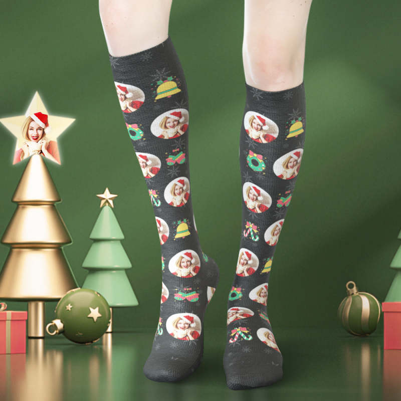 Custom Face Knee High Socks Christmas Santa Claus