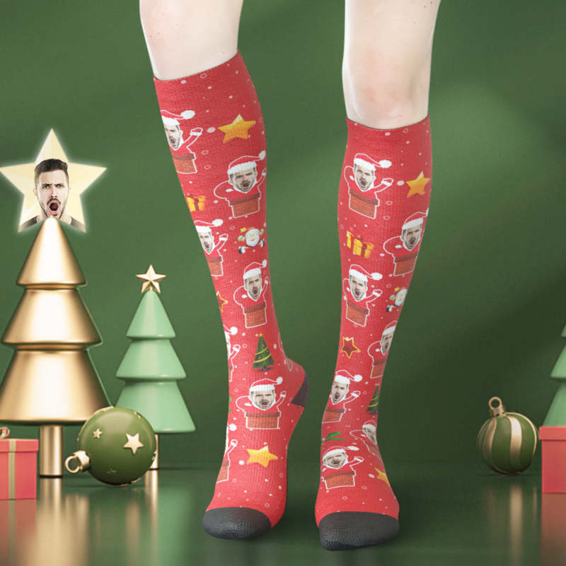 Custom Face Knee High Socks - Santa Stuck In Chimney