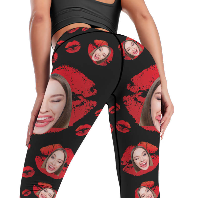 Custom Face Leggings and Tank Top Yoga Clothing Suit Gift for Her - Red Lips