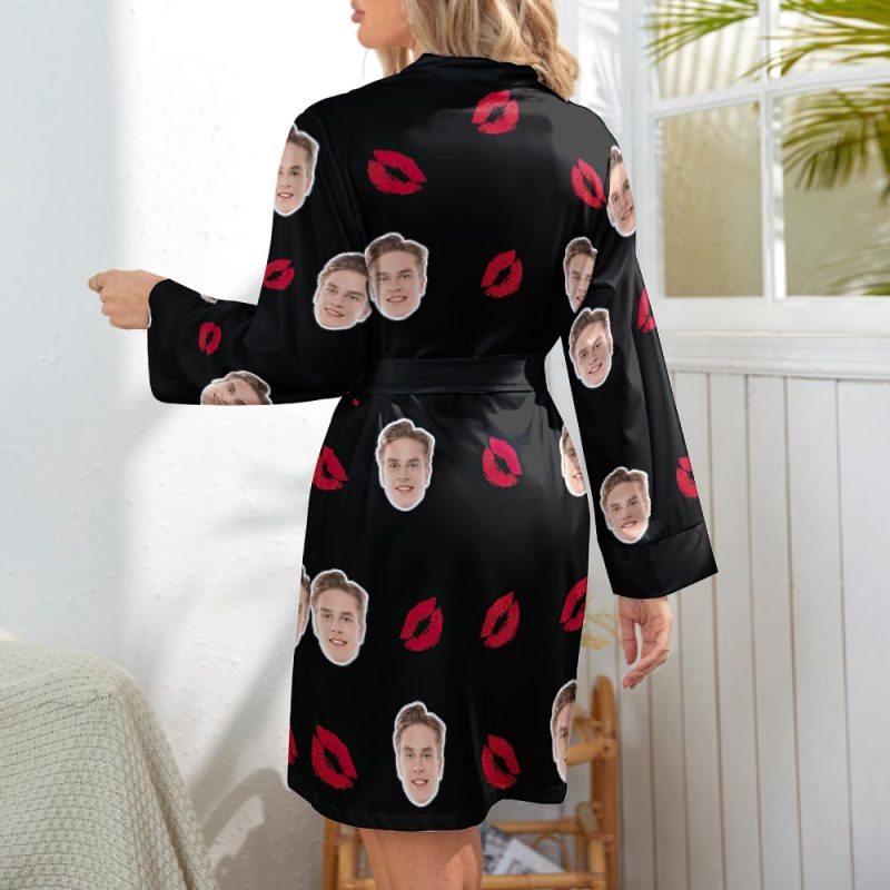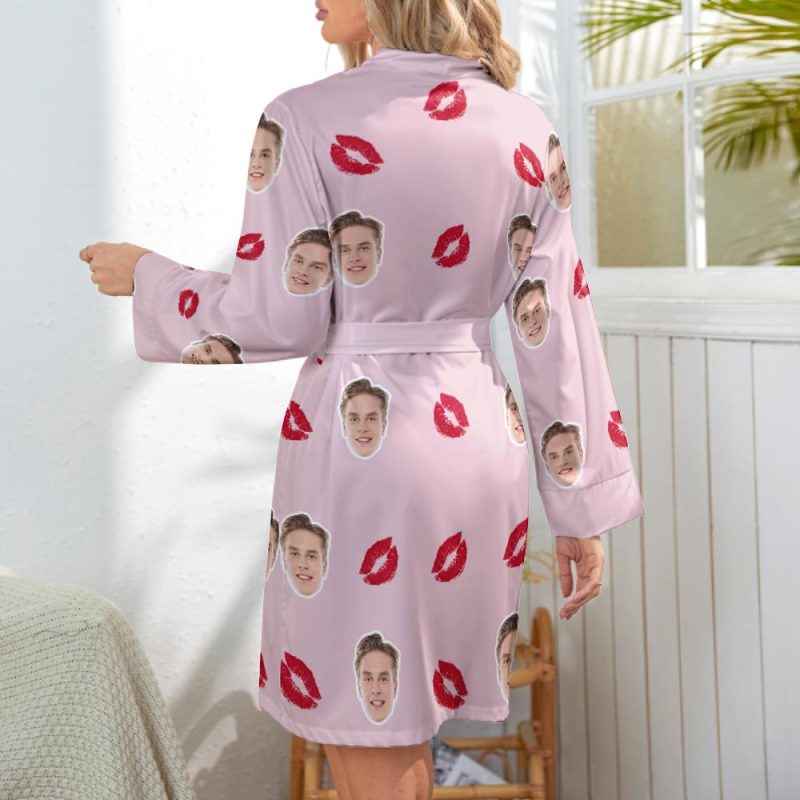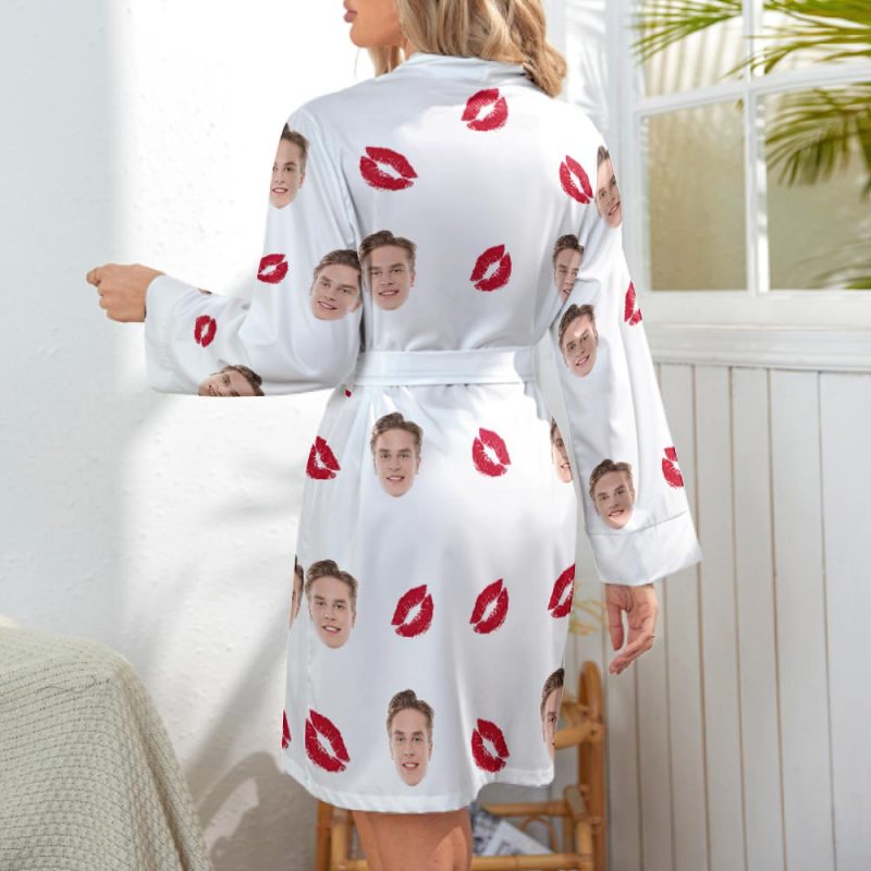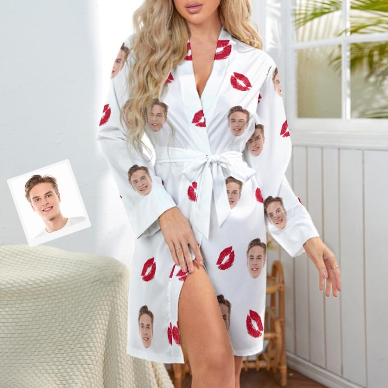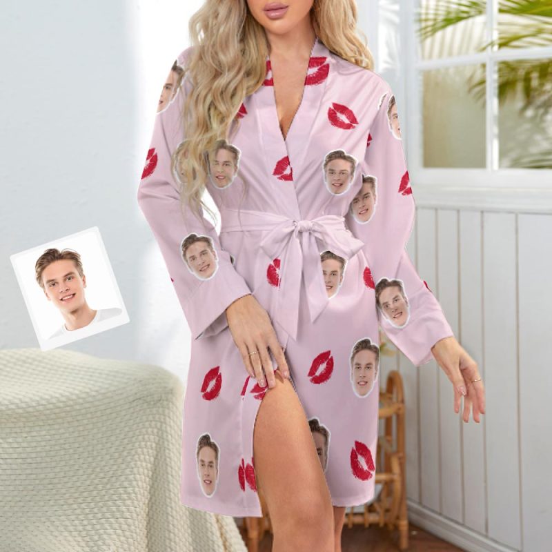 Custom Face Lip Print Long Sleeve Nightgown - Kiss