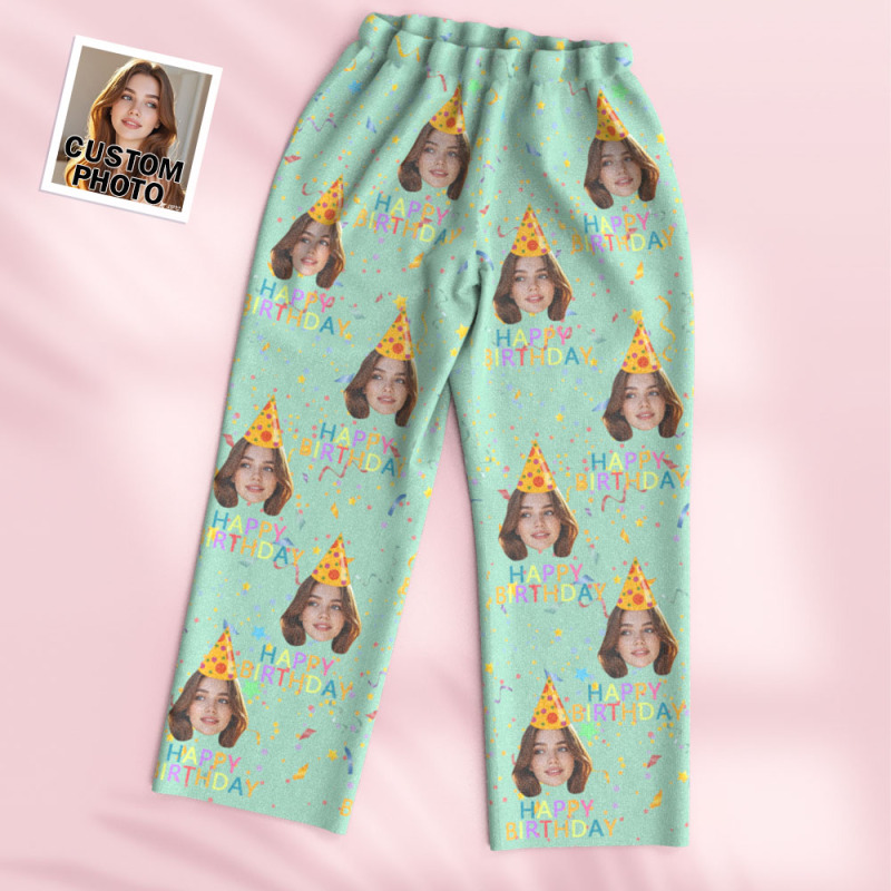 Custom Face Long Sleeve Pajamas Sleepwear Set Personalized Photo Happy Birthday Pajamas