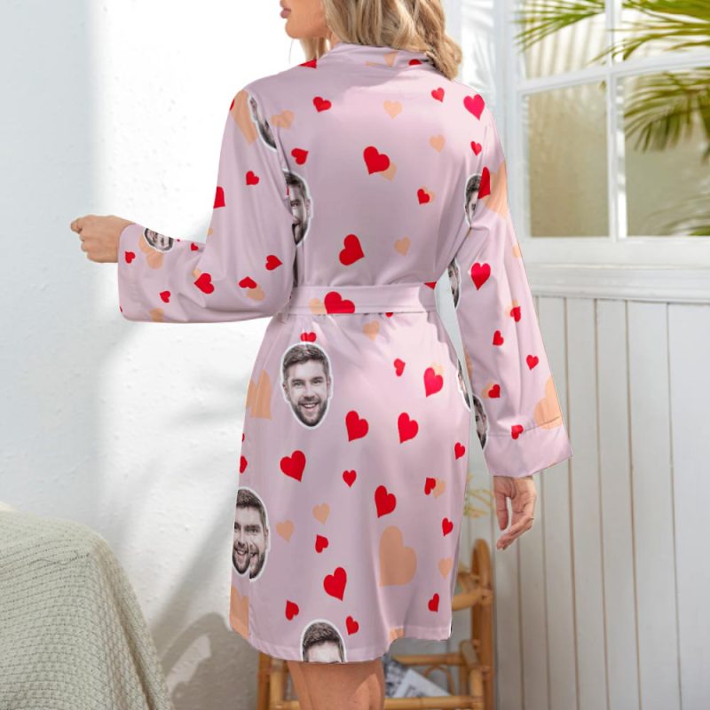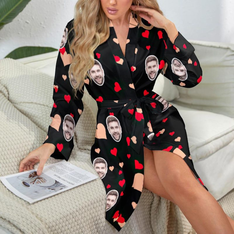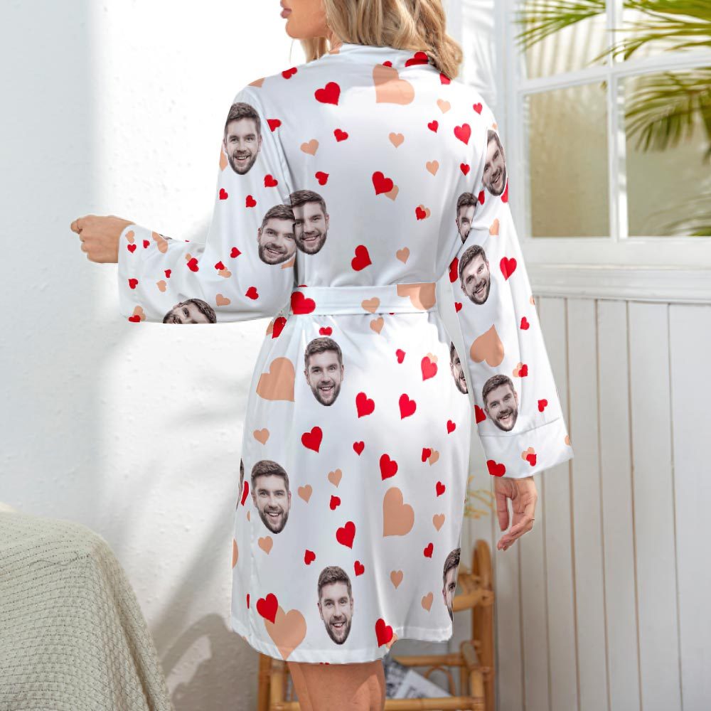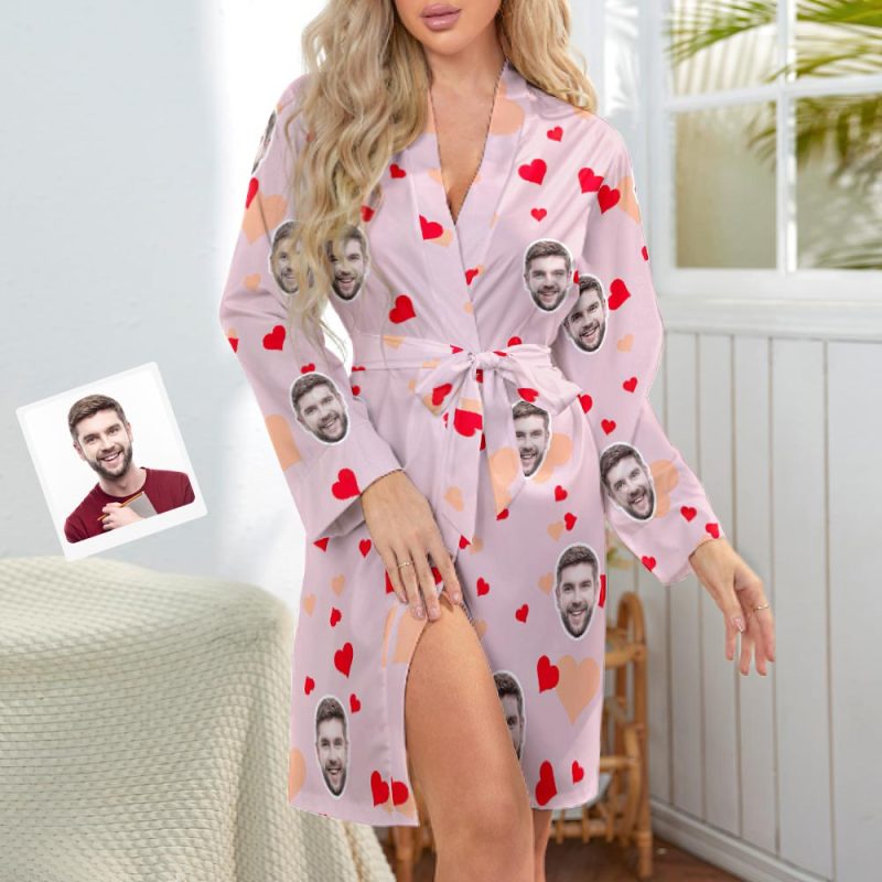 Custom Face Long Sleeved Nightgown Colorful Heart And Love