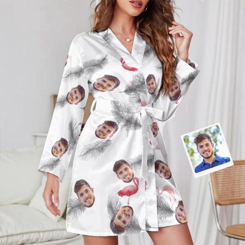 Custom Face Long Sleeved Nightgown Hawaiian Style Flamingo
