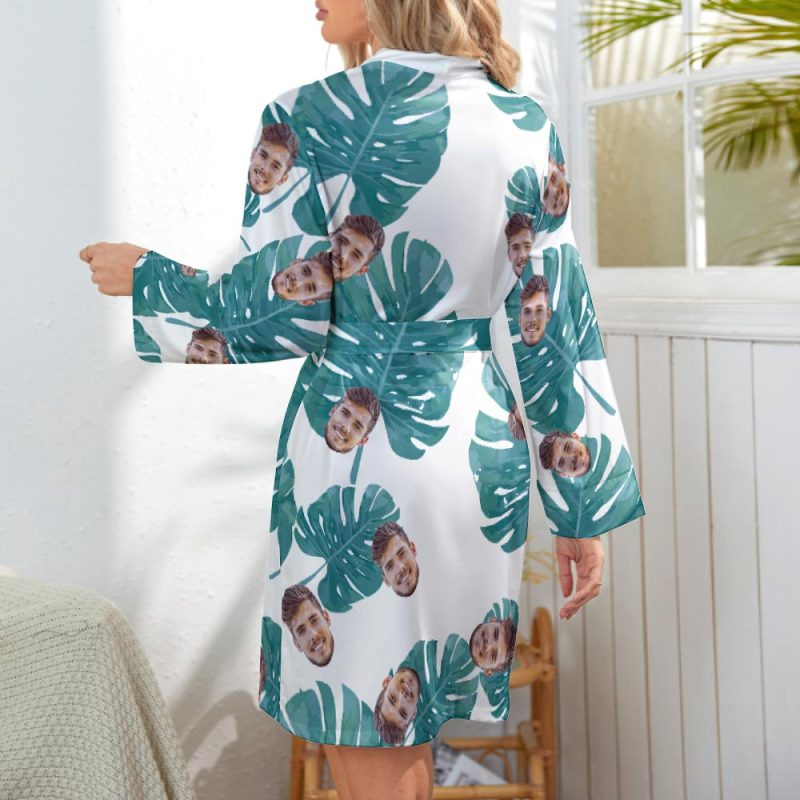 Custom Face Long Sleeved Nightgown Hawaiian Style Large Leaves Pattern