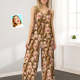Features: This jumpsuit, with an elegant round neck design, can perfectly change the curve of the neck. Belly drawstring straps, adjustable waist elastic, casual style, light and breathable.