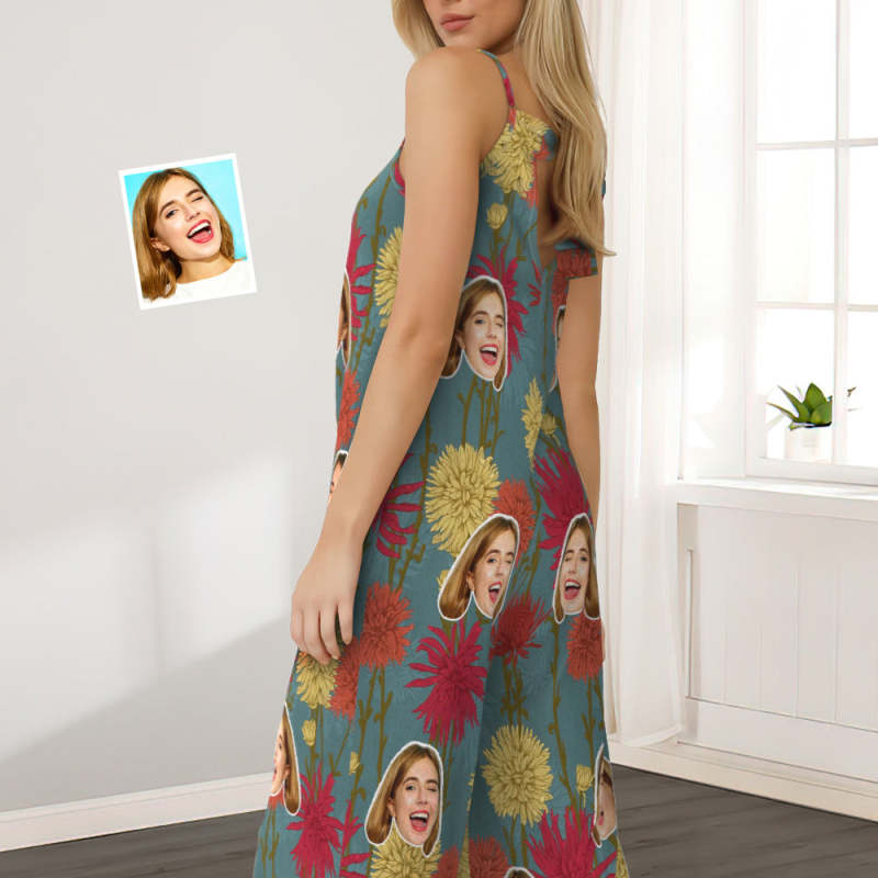 Custom Face Loose Jumpsuit With Wide Leg Vintage Flowers Rompers