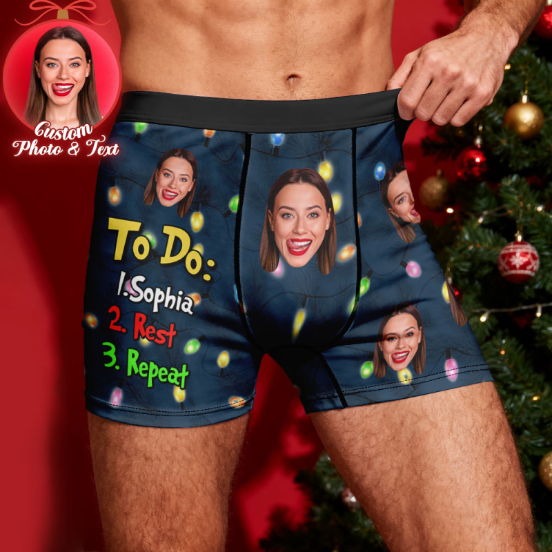 Custom Face Men's Boxer Underwear To Do List Funny Boxer Gift Personalized Photo Name Men's Boxer Briefs Christmas Gift