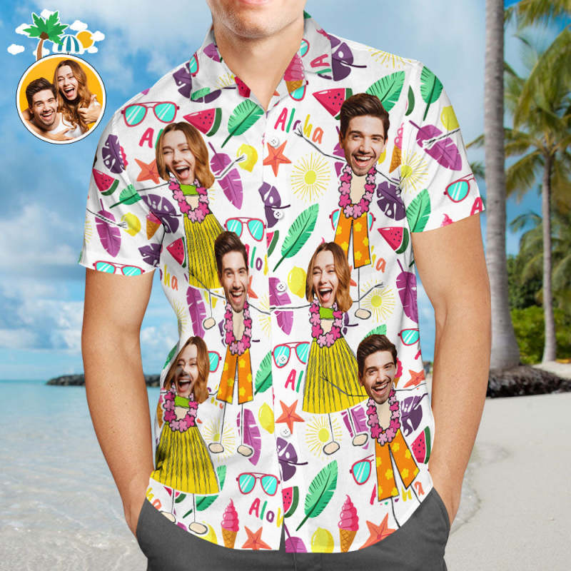 Custom Face Men Hawaiian Shirt Beach Party Hula Aloha Shirt