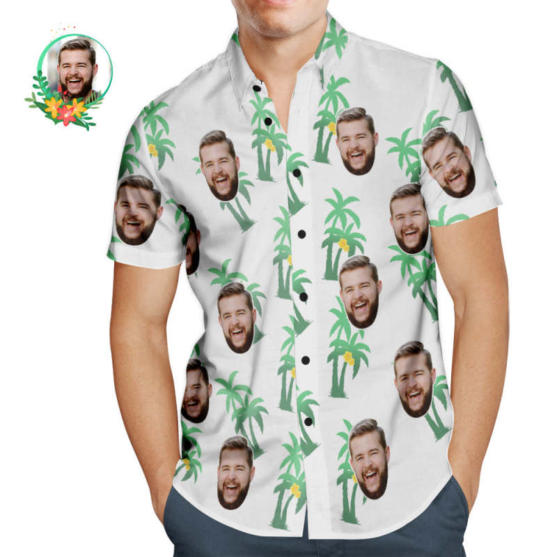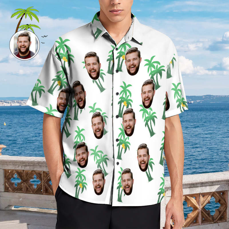 Custom Face Men's All Over Print Island Style Coconut Tree Hawaiian Shirt