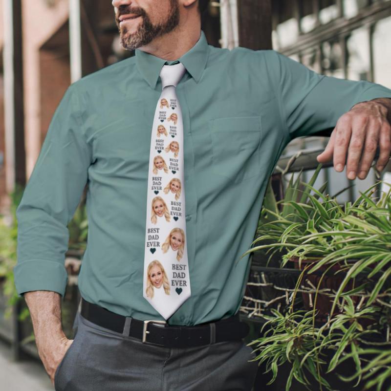 Custom Face On White Necktie Best Dad Ever
