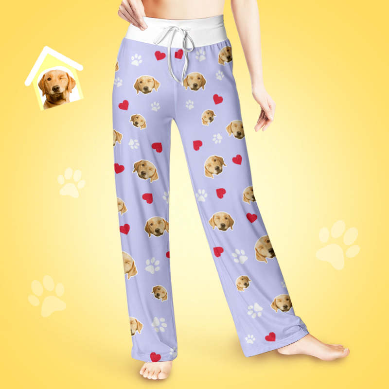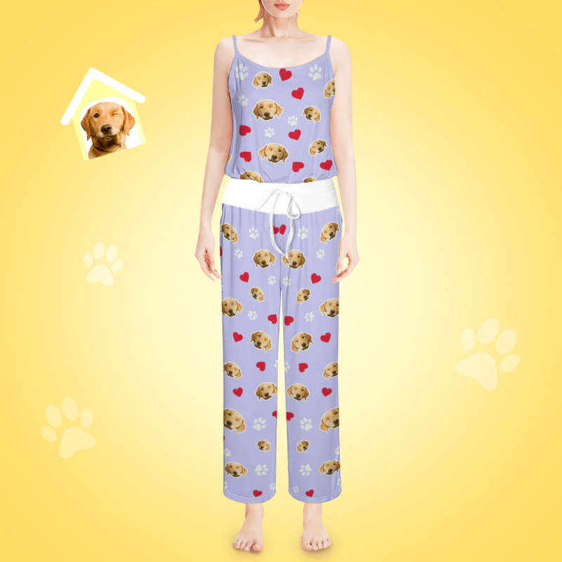 Custom Face Pajama Personalized Dog Paw Print Heart Loungewear