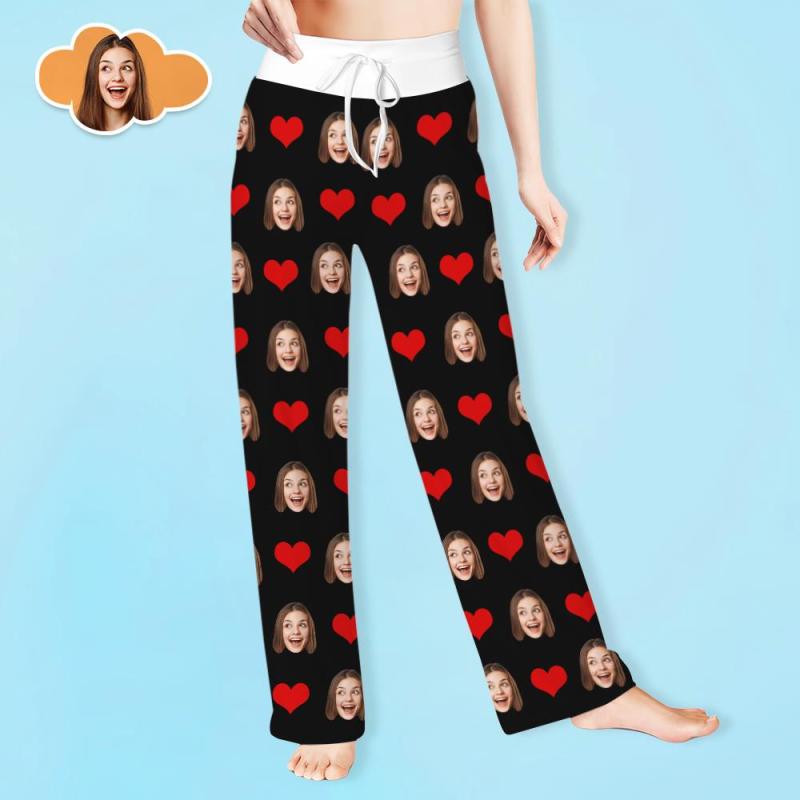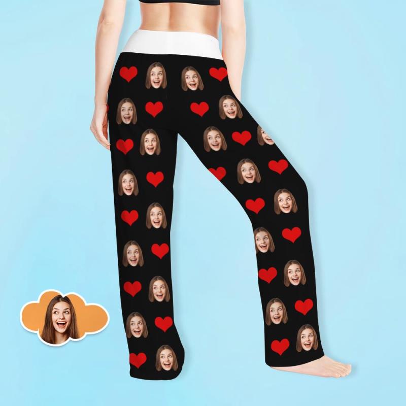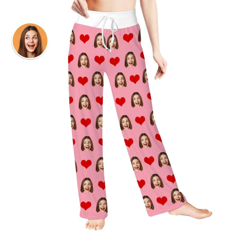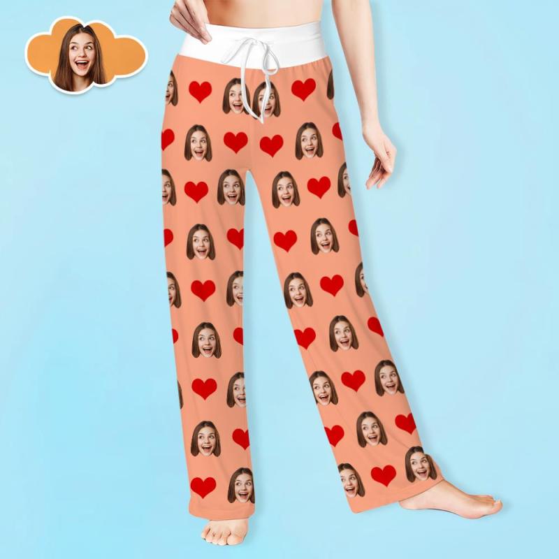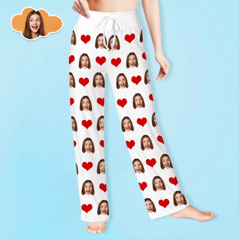 Custom Face Pants Ladie's Loose Wide-leg Pants Heart Pattern