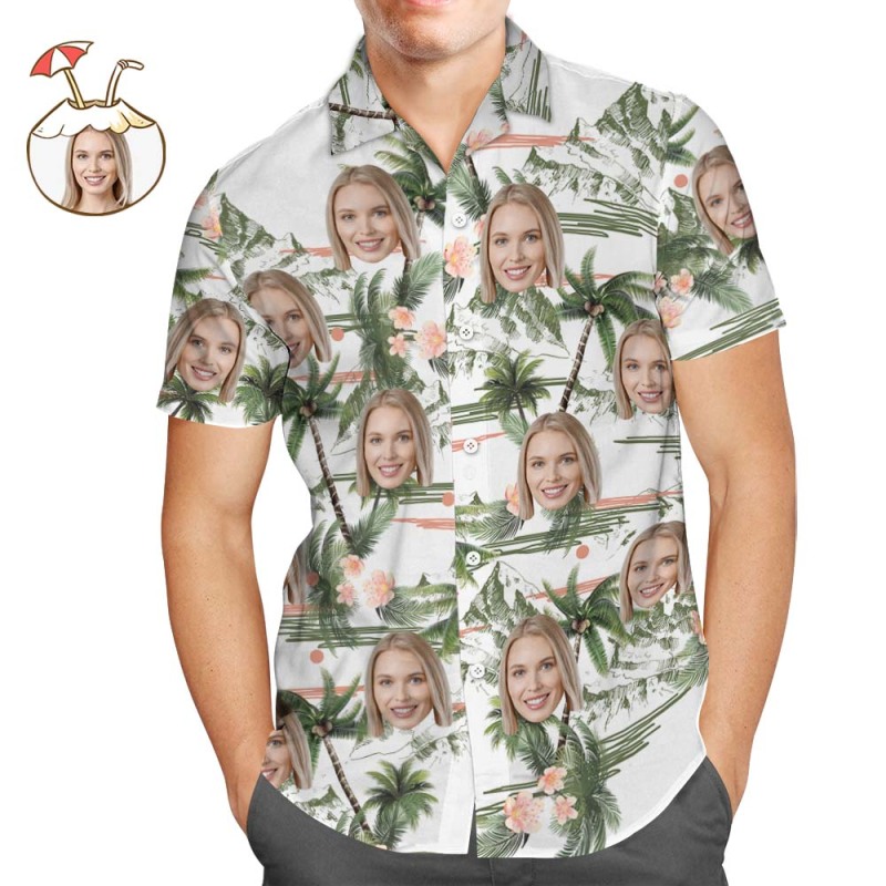 Custom Face Personalized Hawaiian Shirt All Over Print Coconut Tree