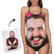 Custom Face Swimwear Women's Photo Slip One Piece Swimsuit Gift For Her - Pink Background