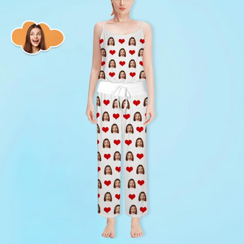 Custom Face Pajamas Set Women's Sleepwear Set Heart Pattern