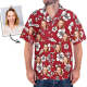 Custom Face Red Hawaiian Shirt Flowers And Leaves
