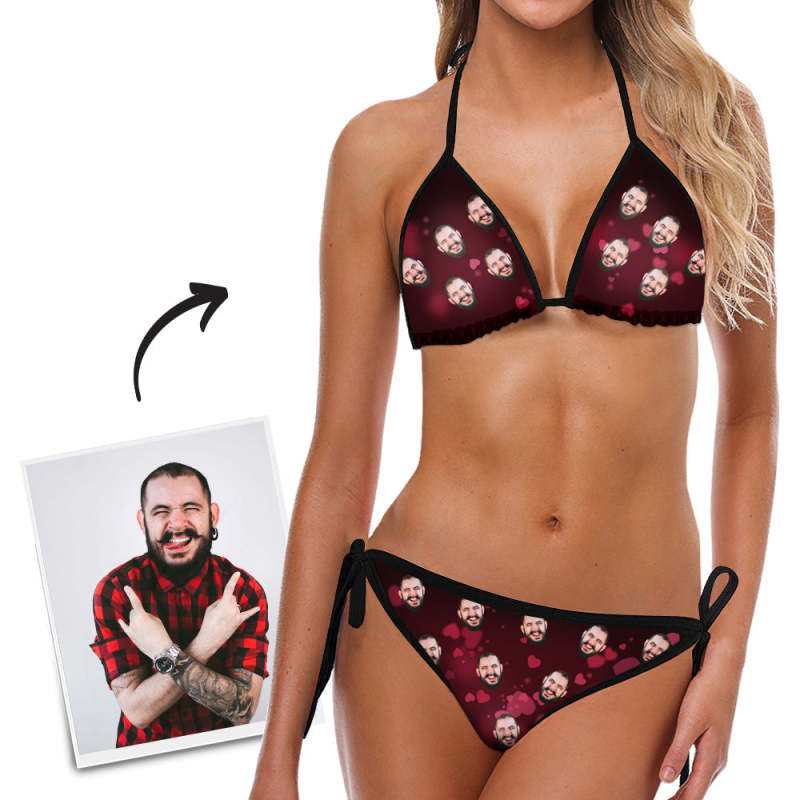 Custom Face Bikini Women's Sexy Photo Segmented Swimsuit Gift For Her - Heart