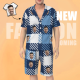 Custom Face Short Sleeve Blue Stripe Grid Pajamas