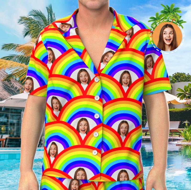 Custom Face Short Sleeve Personalized Pajamas Rainbow Scale Elements