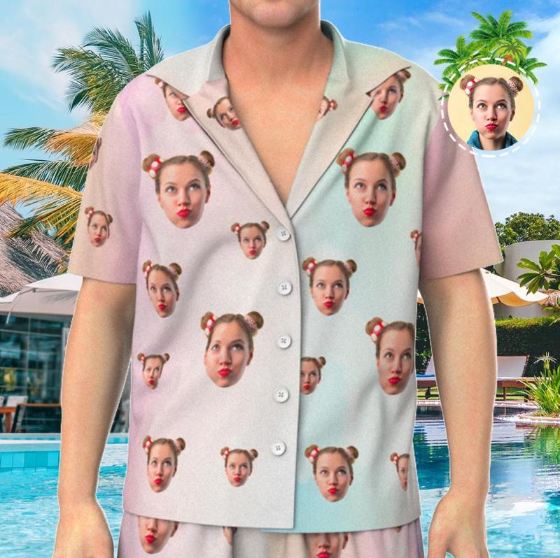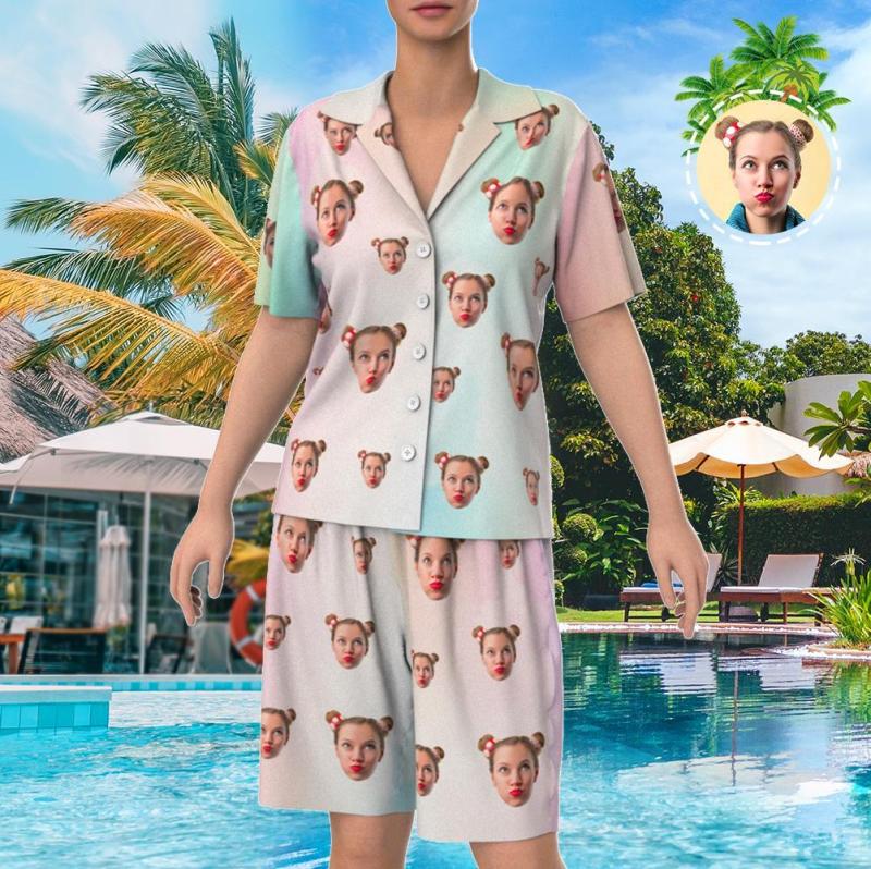 Custom Face Short Sleeve Personalized Tie Dye Pajamas