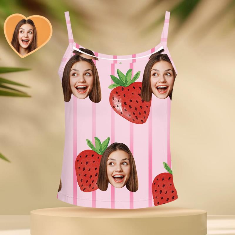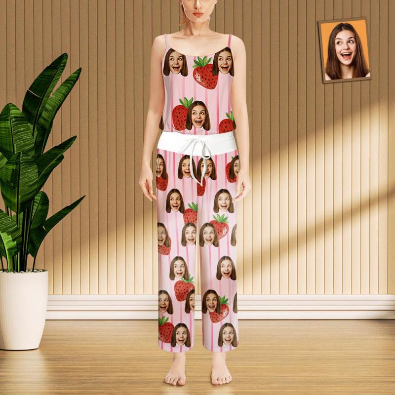 Custom Face Sleepwear Ladies Loose Wide-leg Pants Striped Strawberry Pajama