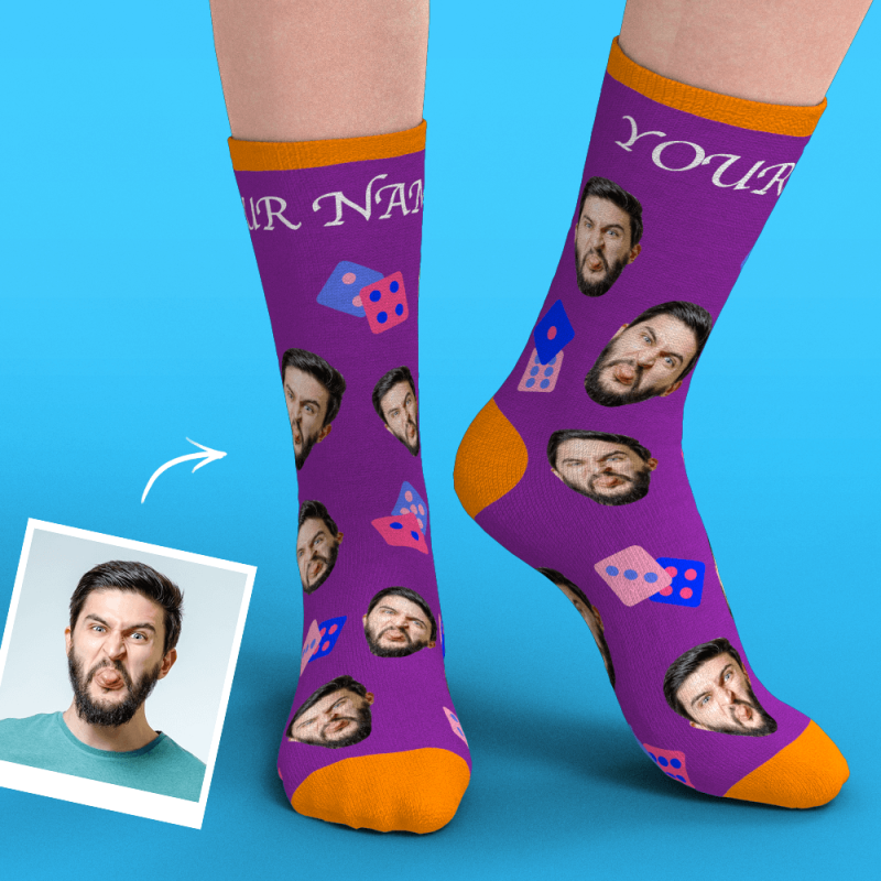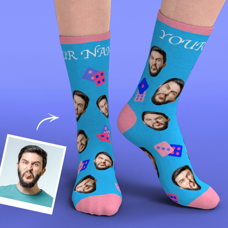 Custom Face Socks Add Pictures And Text - Dice
