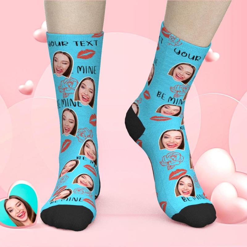 Custom Face Socks Be Mine Valentines Day Personalized Portrait Photo Rose Socks