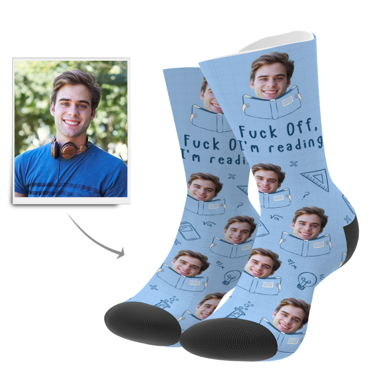 Custom Face Socks Back To School Fuck Off I 'm Reading Socks