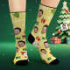 Custom Face Socks Personalized Photo Yellow Socks Cute Santa Claus
