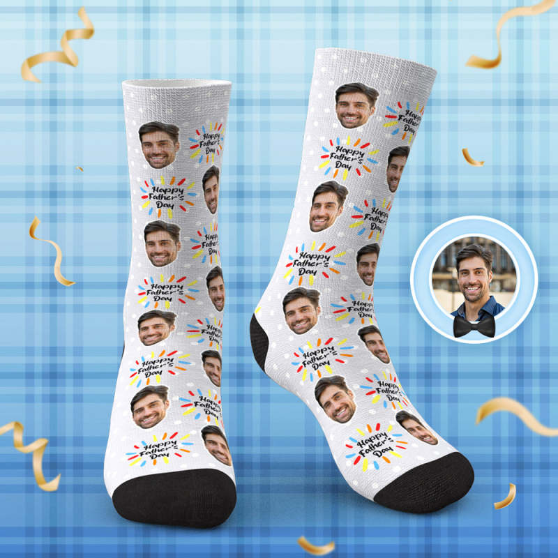 Custom Face Socks Polka Dot Pattern Happy Father's Day