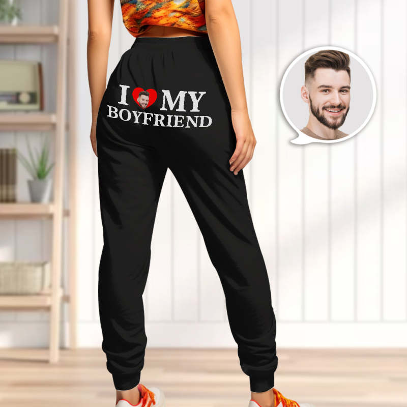 Custom Face Sweatpants Personalized I Love My Boyfriend/Girlfriend Printed Sweatpants Valentine's Day Gift for Couple