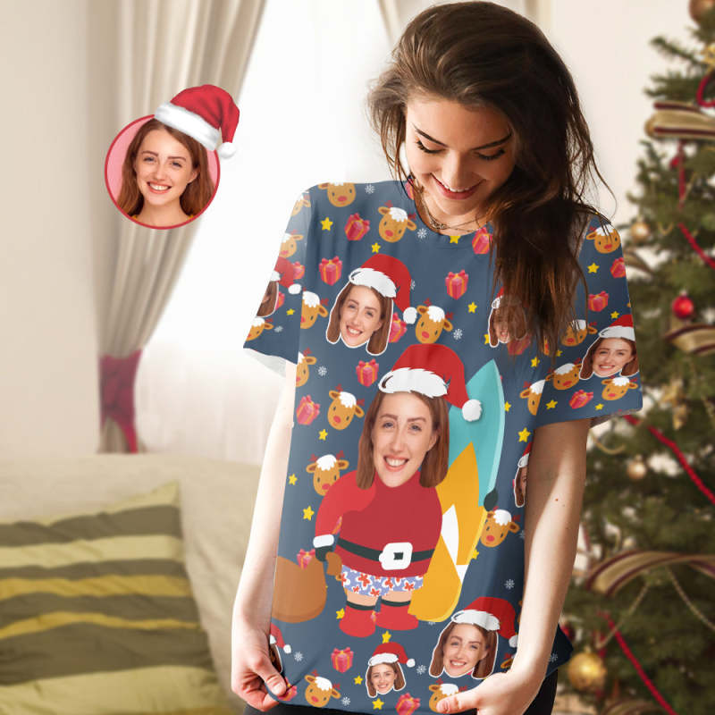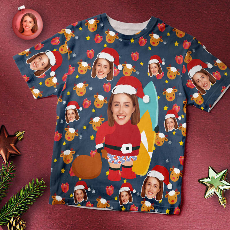Custom Face T-shirt Santa Surfing Christmas Gifts