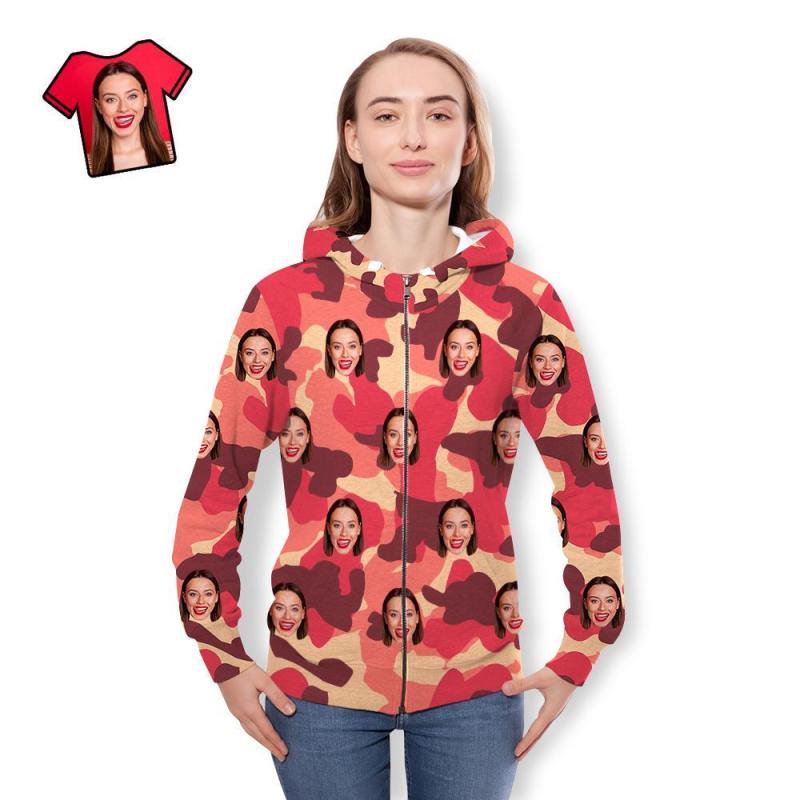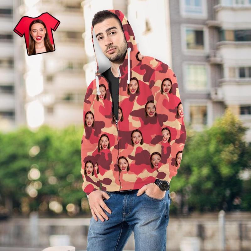Custom Face Unisex Hoodie Casual Printed Misty Rose Camouflage