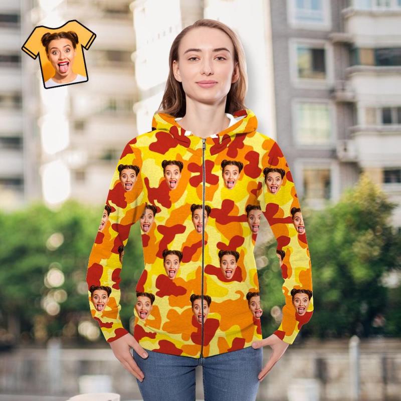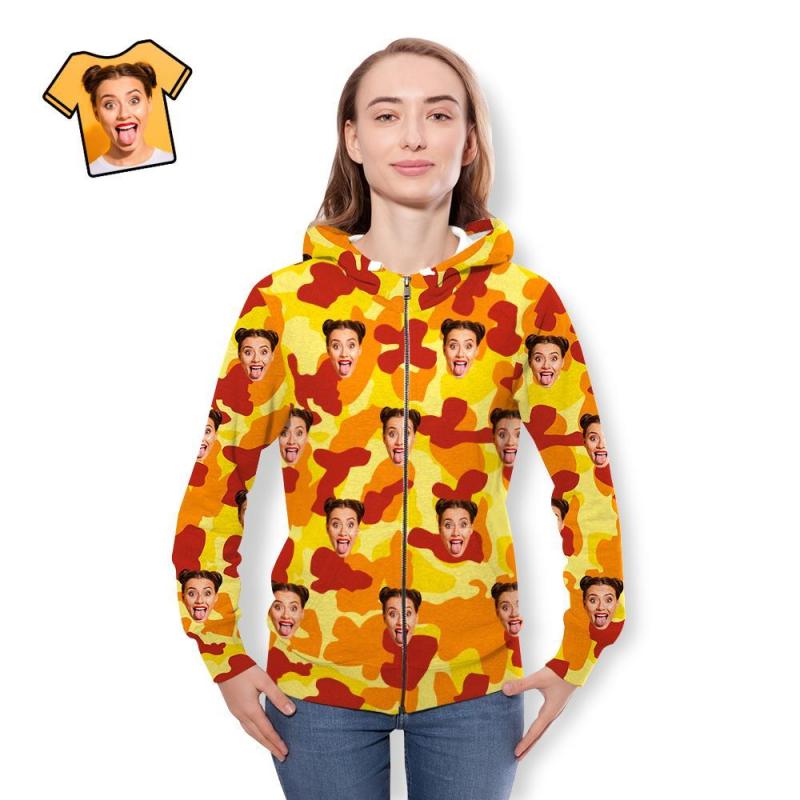 Custom Face Unisex Hoodie Casual Printed Orange Camouflage