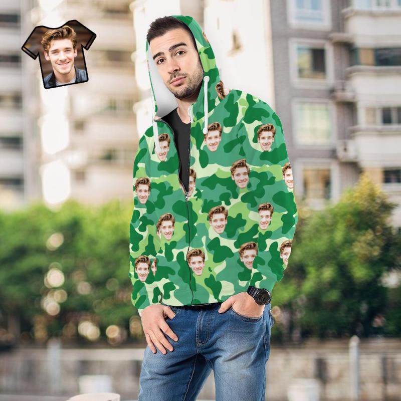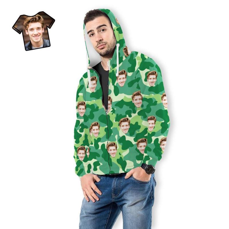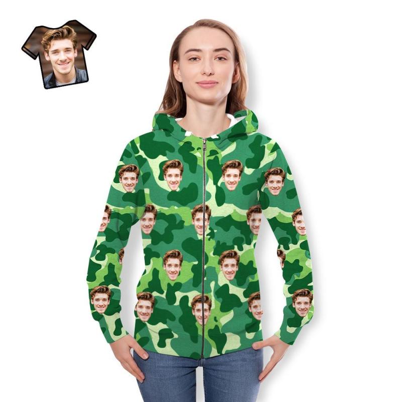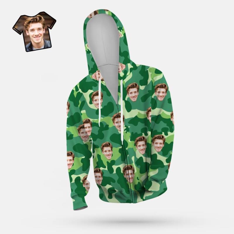 Custom Face Unisex Hoodie Casual Printed Sea Green Camouflage
