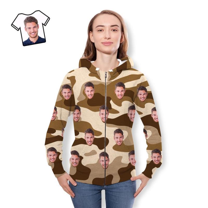 Custom Face Unisex Hoodie Casual Printed Wheat Camouflage