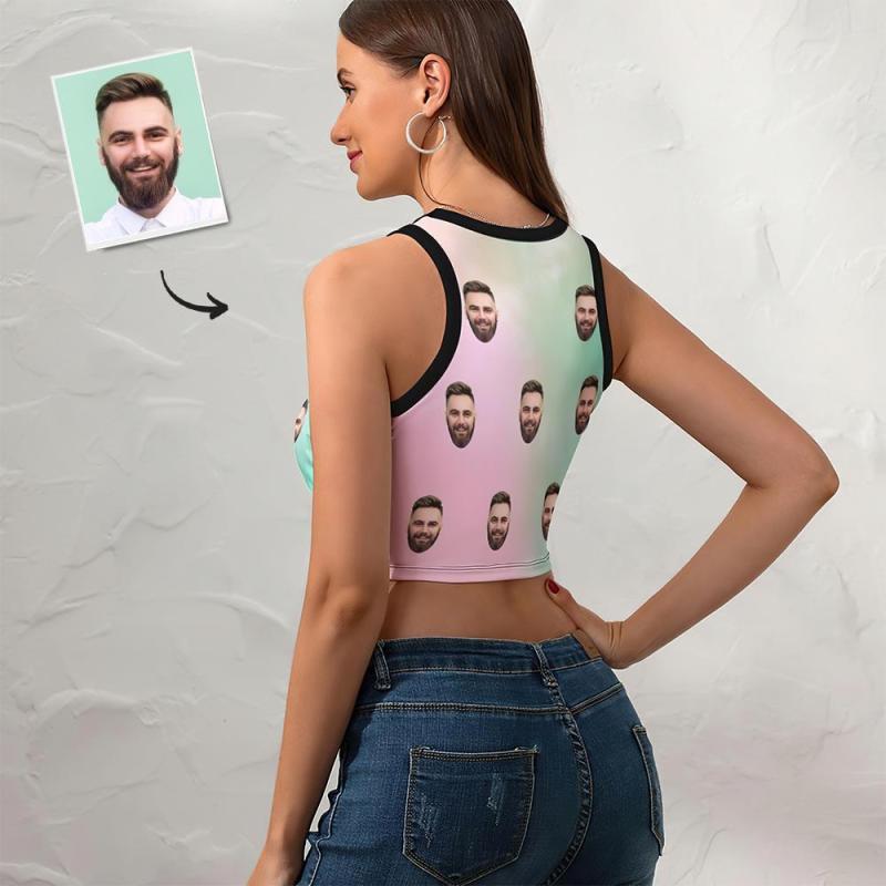 Custom Face Vanilla Sky Vest Sexy Tie Dye Design Customized Ladies Short Racer Vest