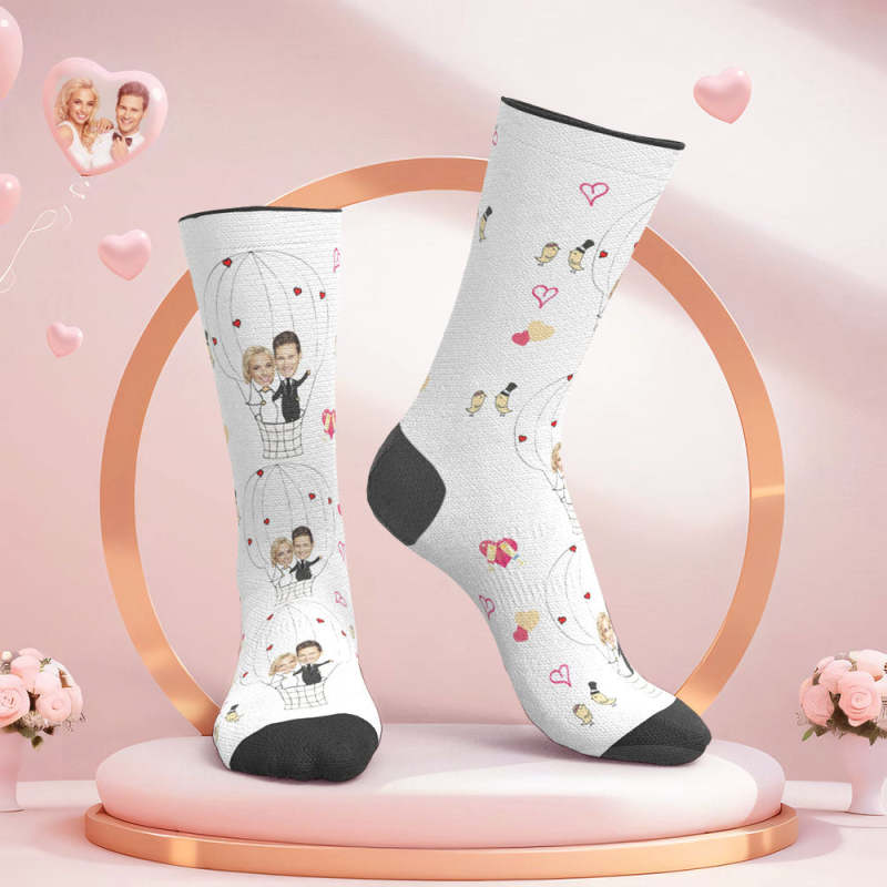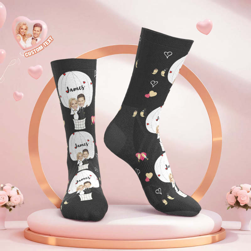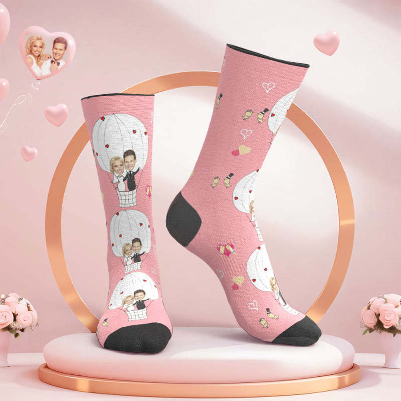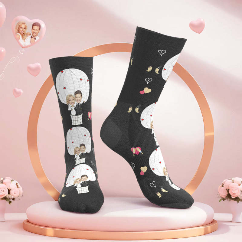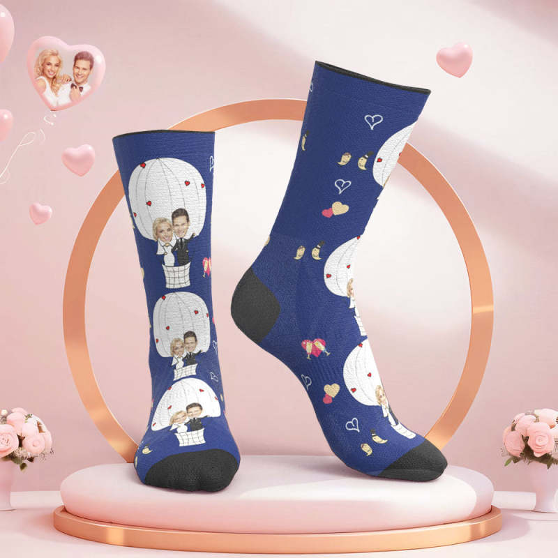 Custom Face Wedding Socks Couple Face Hot Air Balloon Socks