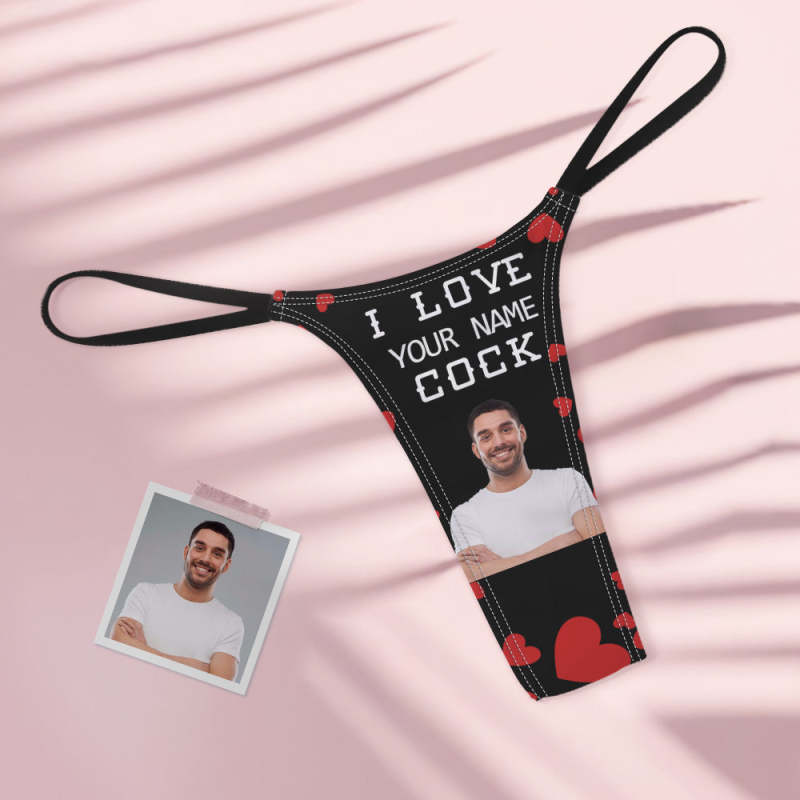 Custom Face Women's Colorful Tanga Thong Valentine's Day Gift I Love Your Cock